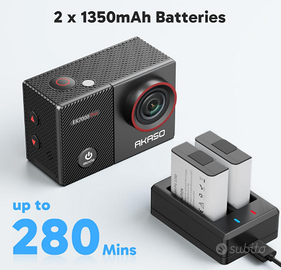 【AGGIORNAMENTO DELLA SERIE DI AKASO EK7000】 La action cam AKASO EK7000 Pro offre video 4K/30fps, 2.7K/30fps, 1080P/60fps e foto da 20MP, consentendoti di catturare ogni momento con dettagli di precisione senza precedenti e nitidezza nitida. Idea regalo per compleanni ed estate.