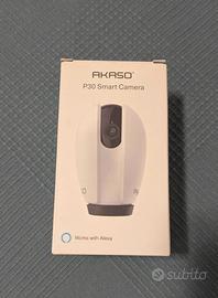 Vendo AKASO P30 Smart Camera Wi-Fi, videocamera di sorveglianza Full HD 1080p, in condizioni pari al nuovo, completa di scatola e accessori originali.