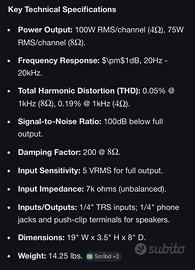 Propongo finale di potenza alesis in buone condizioni estetiche è perfettamente funzionante, con regolatori di volume per entrambi i canali , 100watt rms , buona qualita sonora e ottima costruzione interna , altre specifiche allegate in foto . Possibilità di ritiro a mano in zona Spedisco con ottimo imballo Vedi altri miei annunci come amplificatore, lettore cd , giradischi, casse e diffusori acustici, sintoamplificatore, pre e finale , piastra cassette , radio tuner , dvd , subwoofer, equalizzatore e altro materiale stereo hifi .
