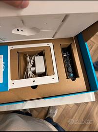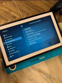 Echo Show 15, acquistato su amazon il 1 Aprile 2024 (quindi ancora in garanzia). Può fungere da centrale multimediale per musica, film e serie TV, controllare dispositivi di smart home, effettuare videochiamate e fungere da assistente vocale per impostare sveglie, timer, prendere appunti e fornire informazioni come meteo e notizie. È anche in grado di visualizzare ricette, riprodurre radio, ascoltare podcast e fare karaoke mostrando i testi.