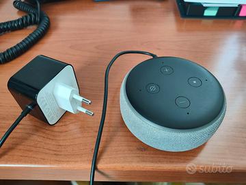Alexa Echo dot di colore nero e grigio Ideale come smart home e per ascoltare musica con suono nitido e chiaro. Completo di alimentatore originale Prodotto perfettamente funzionante, resettato ed igienizzato Spedizione rapida. Vendita da privato e priva di garanzia
