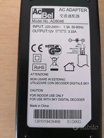 VENDO ALIMENTATORE ORIGINALE SKY - PER DECODER SKY Q /MY SKY /SKY HD - COMPRESO CAVO DI ALIMENTAZIONE - 12 V /3,3 A