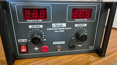 Alimentatore stabilizzato STAB modello AR30, range 0-30V 5A, mai utilizzato. Ottima occasione per gli addetti ai lavori.