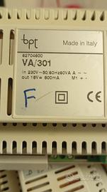 vendo Lotto di 10 alimentatori BPT VA/301 in buone condizioni è perfettamente funzionanti per sostituzione grosso impianto citofonico, e prezzo si riferisce a tutti e dieci gli alimentatori se comprati singolarmente il prezzo è di 100 euro l'uno, per contatti Pasquale 328 33 17 294