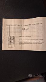 Alinco DJ-C5 versione italiana/europea rx/tx da tasca del peso di soli 85 grammi! In scatola originale con carica batteria, antenna, istruzioni in italiano, basetta di ricarica, microfono/altoparlante da giacca e adattatore per microfoni esterni serie Icom/Yaesu a 2 pin, condizioni perfette come da foto, riceve e trasmette in VHF e UHF, CTCSS, memorie, 300 mW. Le caratteristiche tecniche sono su Rigpix.
