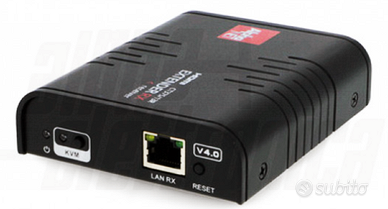 Modulo ricevitore (RX) adatto per estendere le distanze di trasmissione dei cavi HDMI tradizionali utilizzando cavi ethernet UTP/STP Cat.5e/6 in rame. Con il modulo trasmettitore (TX) - qui non incluso - è possibile collegare al trasmettitore (TX) un PC tramite cavo USB e al ricevitore (RX) due diverse periferiche (mouse e tastiera) sempre tramite cavo USB che comunicano direttamente con il PC (con pulsante di selezione). È possibile inoltre collegare, tramite switch di rete Gigabit, ulteriori ricevitori aggiuntivi (RX). Questo extender HDMI consente di inviare un segnale 1080p Full HD tramite una rete LAN pre-esistente basata su switch Gigabit.