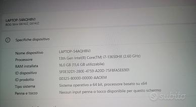 Vendo per inutilizzo potente Laptop Gaming/Workstation Asus ROG Strix G16 (modello G614JZ-N3001W). Il computer è stato acquistato il 07/02/2025, è ancora in piena garanzia ufficiale (fornisco ricevuta/fattura d'acquisto).