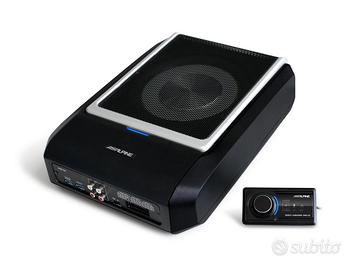 Alpine pwd-x5 subwoofer amplificato sottosedile con dsp a 4 canali. 25 watt rms per ciascuno dei diffusori anteriori e posteriori piu 165 watt per il sub e l’elaborazione del segnale digitale e bluetooth. Cavi di cablaggio presenti