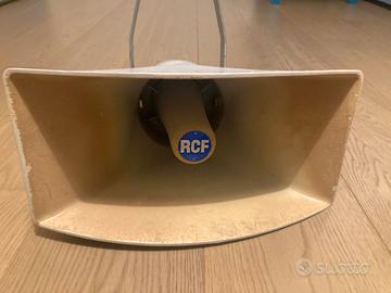 Altoparlante a tromba megafono marca RCF, funzionante con segni d'usura estetici.