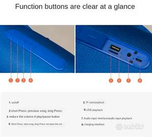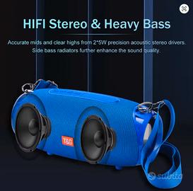 Altoparlante Bluetooth con subwoofer, portatile e senza fili, cassa acustica da 10W con potente basso profondo, altoparlante ad alta fedeltà con doppia membrana, impermeabile per uso all'aperto, supporta USB/scheda TF/radio/vivavoce
