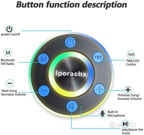 iporachx Altoparlante Bluetooth Portatile senza fili Bluetooth con audio HD, Altoparlante da doccia con 4 ore di riproduzione, radio FM, vivavoce, TWS e spettacolo di luci LED