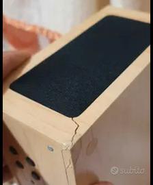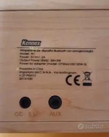 Altoparlante x dispositivi bluetooth con orologio e sveglia. Come si evince dalla foto leggermente rovinato nell' angolo ma non pregiudica il funzionamento.