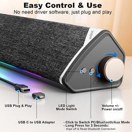 SOULION R60 LED Soundbar PC USB Bluetooth 5.3 Casse per Computer, Portatile, Gaming, Monitor, Altoparlante Stereo 12W, Alimentazioni USB, con Aux Jack 3.5mm, Design del tessuto di moda.