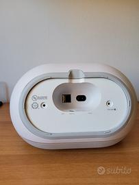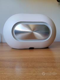 Altoparlante molto potente e poco ingombrante, usato ma è in condizioni perfette, senza nessun diffetto. si collega sia tramite blutooth che tramite in cavo AUX. non ha adattatore e va a corrente alternata 220V. consumo standby 0.3Watt