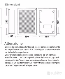 Altoparlante rettangolare ad incasso 2 vie per pareti in cartongesso impedenza 8 omm su richiesta e versione 100V/70V 3W 6W