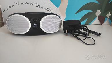Altoparlante portatile Logitech s125i per iPod e qualche modello di iPhone, funziona dalle batterie (4 batterie AA), è presente anche un cavo ma la presa è inglese