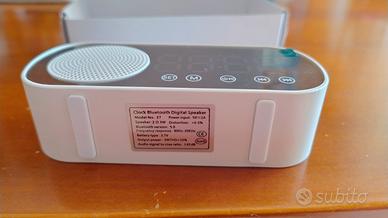 Altoparlante cassa Digital speaker bluetooth con orologio, lettore scheda TF ricaricabile usb completo di cavetto , dimensioni circa 12 x 5 x 3.5. Mai usato , ancora in pellicola protettiva.