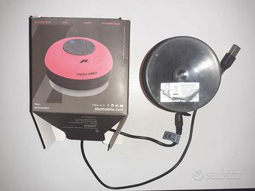 Speaker con ventosa, tasti per musica e chiamate, microfono integrato e vivavoce, protetto dall’acqua per utilizzo in doccia, bagno, piscina e cucina.