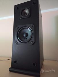 Altoparlanti casse Sanyo 2 canali, sistema che lavora su due canali ma composto da due satelliti due vie e un subwoofer 20 cm. Sanyo SuperBass SXS801 satelliti e SXW801 Subwoofer 80W.