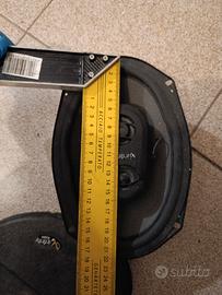 Splendidi altoparlanti tre vie, vendo causa cambio auto (altri altoparlanti già venduti tutti eccetto due bassi da 13") misure 6x9" (15x22 cm) attacchi standard.