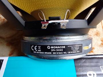 vendo coppia di altoparlanti -monacor_SPH-300KE- usati pochissimo, dimensione 30 cm. Impedenza (Z): 8 ohm