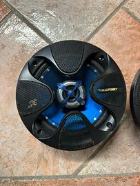 Si vende la coppia di altoparlanti marca Blaupunkt gt series da 120w, usati ma in ottime condizioni con un piccolo segno di usura sulla retina proteggi cono come si puo vedere nella foto.