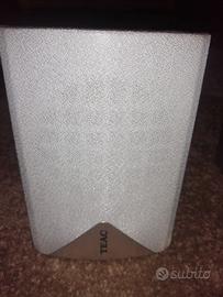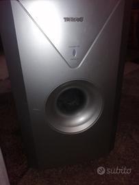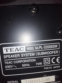 Altoparlanti per home theatre, 5 tweeter e 1 woofer autoalimentato. Non serve quindi amplificatore potente per i bassi. Marca TEAC. Perfettamente funzionanti, venduti perché il lettore dvd ha dei problemi e la riparazione è troppo costosa