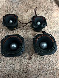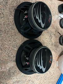 Altoparlanti idonei anche per impianti tuner. N.2 mid woofer da 21cm,n.4 twiter 2da 10cm, 2 da 8cm, n.1 subwoofer artigianale ma potentissimo da 300watt.
