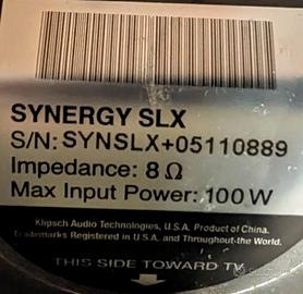 vendo coppia di altoparlanti da parete Klipsc SYNERGY SLX 8 ohm, max 100 watt. Con i supporti per appenderle a parete. Non ci sono supporti da terra. Montate, ma mai usate.