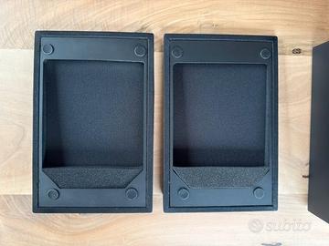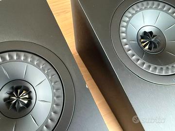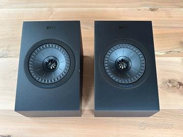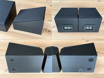 Kef Q50a Coppia di casse per il canale surround Dolby Atmos a 2 vie posizionabili sulle casse frontali o posteriori per un Home Theater Atmos. Indirizzano il suono verso il soffitto così da riflettere verso l’ascoltatore. Le doppie scanalature sul fondo consentono l'installazione a muro. In alternativa si possono posizionare anche su scaffali, mensole ecc. Utilizzabili anche come "semplici" canali surround. Il Driver con tecnologia Uni-Q garantisce un suono preciso, naturale e ampio e si accoppia al tweeter da 2,5 cm. La guida d’onda frontale Tangerine ottimizza la dispersione angolare, così da sentire un suono ampio e reale anche se non si è al centro fra le due casse. Il woofer ha il cono in alluminio e una sospensione Z-Flex per delle frequenze medio-basse. Perfettamente funzionanti ed esteticamente in condizioni eccellenti, ad eccezione di una piccola tacca su una delle due casse (vedere foto). Complete di griglie magnetiche, manuale e imballo originale. Spedizione a carico dell'acquirente. Pagamenti accettati: bonifico bancario anticipato o paypal (commissini a carico dell'acquirente). Possibilità di scambio a mano in zona Occhiobello (RO). No permute. Scheda tecnica Coppia casse surround N° vie: 2 Tweeter: 2,5 cm MidWoofer: 13 cm Uni-Q Risposta in frequenza: 105 Hz – 18.5 kHz Potenza raccomandata: 10-100 W RMS Sensibilità: 86 dB Impedenza: 8 Ohm Dimensioni (HxLxP): 17x18x26 cm Peso: 4,3 kg Colore: Nero