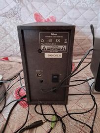 Sistema di altoparlanti Trust composto da un subwoofer e due satelliti. - Colore nero con dettagli argento. - Design moderno.