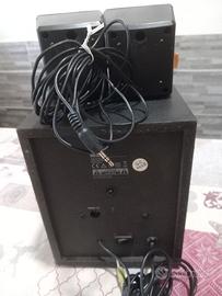 Altoparlanti trust 2.1 subwoofer per PC Gli Altoparlanti sono come in foto segni dell'uso ma preferibilmente funzionanti.Set di altoparlanti TRUST 15418 Cube con subwoofer - altoparlanti minijack da 15 W (Rms)