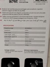 Set di altoparlanti con elevata potenza di picco 36w (18 watt RMS) per una riproduzione del suono ricca. Marca Trust