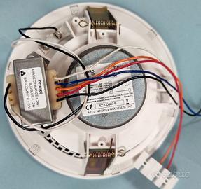 Diffusore acustico rotondo da incasso, a basso impatto visivo, tipo FRAMELESS (solo 5 mm di sporgenza), realizzato in materiale plastico tipo ABS con retina di protezione in lamiera di alluminio microforata. Adatto all'incasso a soffitto su cartongesso, senza viti, utilizzando il sistema di fissaggio in dotazione. Altoparlante 2 vie larga banda, woofer a sospensione morbida da 6,5". Potenza: 6-12-24W. 100V a tensione costante 100V Impedenza nominale: 80 ohm a acorrente costante Diametro foro incasso 165 mm. Dimensioni: Ø190.5 x H70mm. Peso: 1 kg. Colore: bianco Perfettamente funzionanti prezzo 40€ cadauno 150 x 4 pezzi. Disponibile anche amplificatore Amplificatore ShowSA-18 per 60€. Se preso tutto assieme 200€. NO OFFERTE ASSURDE, AFFARISTI,PERDITEMPO, OFFRO E PRETENDO LA MASSIMA SERIETA'. Grazie