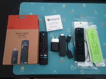 Vendo Fire Stick 4K Max (2nd Gen) WiFi 6E - 16GB, l'ultimo e più potente modello delle Amazon Fire Stick. Acquistato a fine agosto 2025, fornisco scontrino per garanzia residua. Includo anche due cover per il telecomando, una nera e l'altra verde. Usata poco, condizioni pari al nuovo E' la versione in vendita a 79,99 sul sito Amazon
