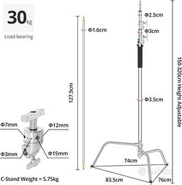 Vendo AMBITFUL C-Stand Heavy Duty in acciaio inox, altezza massima 320 cm, completo di: