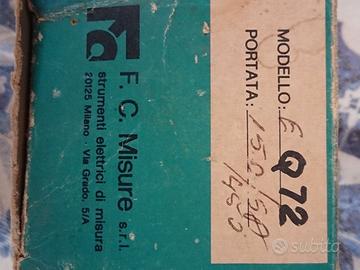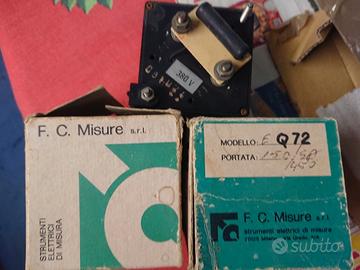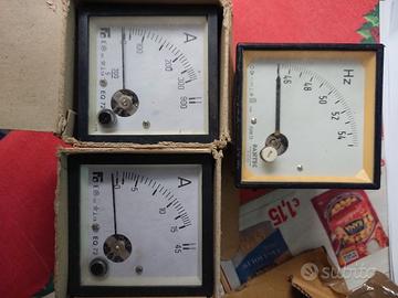 n°1 Frequenzimetro, FQM72, PANTEC, analogico, 380V,0÷55hz, 1mA, ~0,5, (15 92 012). n°2 Amperometri, EQ72, F.C. Misure, analogico, 0÷900A e 0÷45A 35 al pz. 60 x 2pz. 80 x 3pz.