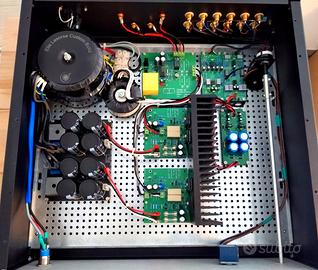 L'amplificatore è Dual Mono ed è stato realizzato interamente da me, progettazione e realizzazione dei circuiti stampati inclusi.