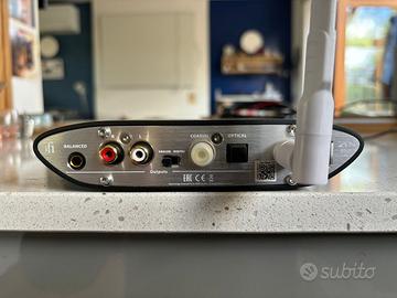 ricevitore Bluetooth ad alta risoluzione IFI audio ZEN Blue V2 che supporta i codec aptX, aptX HD, aptX Low Latency, aptX Adaptive, HWA, AAC e SBC, con uscite analogiche RCA e digitali ottiche/coassiali.