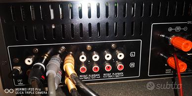 Amplificatore pre-amplificatore con tecnologia Classe AA. La Classe AA ha una configurazione di amplificazione VC-4 con due tipi di amplificatori per ciascun canale sinistro e destro. Uno è un amplificatore a tensione controllata in pura classe A, esente da distorsioni di commutazione e di crossover, e l'altro è un amplificatore a corrente che pilota dinamicamente gli altoparlanti. Di conseguenza, l'amplificatore a tensione controllata è liberato dal peso dell'alimentazione di corrente e la tensione può essere controllata fedelmente in base al segnale di ingresso. L'amplificatore a corrente fornisce la corrente necessaria per pilotare l'altoparlante ed elimina effetti negativi come le fluttuazioni di impedenza dell'altoparlante. La sezione di alimentazione utilizza un trasformatore di grandi dimensioni e un condensatore di grandi dimensioni con una capacità di erogazione di corrente istantanea di 300 A e un'eccellente linearità. Inoltre, lo stadio di uscita e la sezione di alimentazione sono integrati con un'ingegnosa configurazione da un esclusivo blocco di potenza concentrato, eliminando gli effetti negativi dei campi elettromagnetici dalla radice ed eliminando la distorsione ad alta frequenza causata dalle radiazioni elettromagnetiche. Dotato di un jack di ingresso Route 6, è possibile controllare la sorgente selezionata tramite un indicatore. Dotato della funzione CD Direct, è possibile collegarsi direttamente a un volume senza utilizzare il selettore di ingresso. Utilizza un grande isolante metallico per ridurre gli effetti negativi causati dalle vibrazioni esterne. Specifiche; Potenza d'uscita: 50 watt per canale su 8Ω (stereo) Risposta in frequenza: da 20Hz a 20kHz Distorsione armonica totale: 0,003% Fattore di smorzamento: 60 Sensibilità d'ingresso: 2,5mV (MM), 150mV (linea) Rapporto segnale/rumore: 76dB (MM), 91dB (linea) Separazione canali: 50dB (linea) Uscita: 150mV (linea) Impedenza di carico altoparlanti: da 4Ω a 16Ω CONDIZIONI PERFETTO