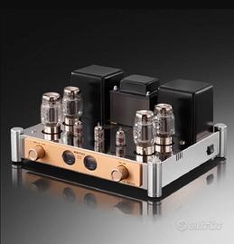 Amplificazione di tensione 12AT7, pilotaggio di corrente 12AU7, uscita di potenza push-pull KT88.