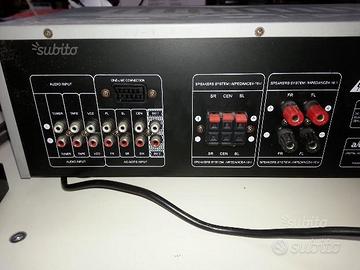 Amplificatore 5.1 controllato a microprocessore con karaoke. 100 watt x 2 , circa 40-50 watt x 3 fidelity sound. uscita sub preamplificata