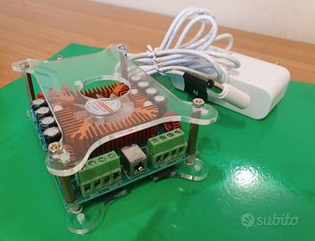 Amplificatore 50w x 4 a 4ohm (gestisce da 2 a 8 ohm e funzione bridge), chip tda7850, classe AB, 2 canali dedicati stereo e 2 per subwoofer, ventola di raffreddamento, connessione bluetooth 5.0, comandi volume più, volume meno e play/pausa, ideale per amplificare casse passive o progetti sia da casa che portatili. L'oggetto in questione è perfettamente funzionante, condizioni come da foto e viene fornito con case e alimentatore, può funzionare anche con batteria da 12v a 14,4v.
