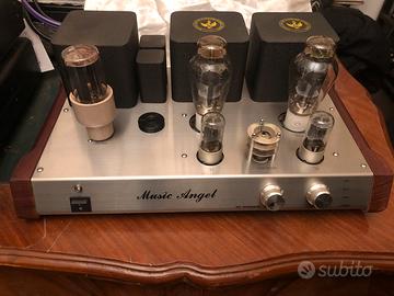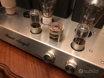 Vendo amplificatore Music Angel con valvole 300 b, 8 watts in classe A, come nuovo, usato pochissimo. Non spedisco e non accetto pagamento con tutto subito, solo ritiro di persona.