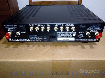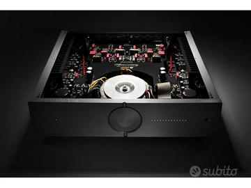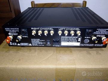 vendo amplificatore integrato Audio Analogue Puccini anniversary ,Potenza su carico da 8 Ω: 80 W , su carico da 4 Ω: 160 W, su carico da 2 Ω: 300 W Peso: 15.5 kg. Circuitazione completamente dual-mono. Trasformatore da di 700VA, sei coppie di transistor finale (tre per canale).Un anno di vita, 5 anni di garanzia del produttore. Prezzo di listino 5500 Euro , vendo a 3100 euro , non permute , spedisco.