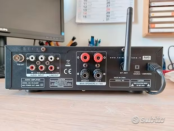 - Connessioni tramite morsetti (RCA tramite due ingressi e un'uscita regolabile tramite telecomando)