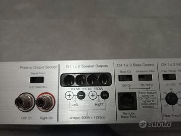 Amplificatore Audio per Auto 400watts RMS 4 canali usato solo un anno. Tenuto come nuovo, funzionante. Nella mia macchina, mi mandava casse anteriori, casse posteriori agli sportelli e pannello bauliera. Suono molto pulito e potenza assicurata. Pagato prezzo originale: 750 euro.