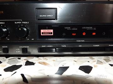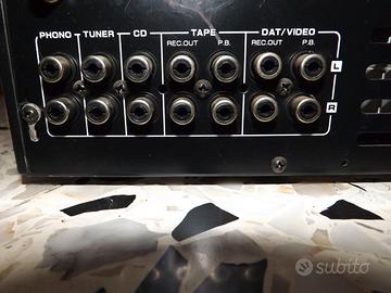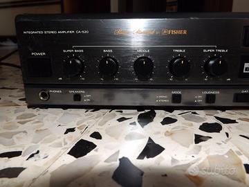 Vendesi Amplificatore Audio Professionale di ottima Qualità Made in Germany Fisher Studio Standard modello : CA - 520 L' Amplificatore si trova in ottime condizioni e perfettamente funzionante usato pochissimo inoltre dispone di molti controlli del Tono (Audio) come : Super Bass per incrementare le Frequenze Basse , Bass , Middle , Treble , Super Treble , Pulsante per Attivare/Disattivare le Casse- Diffusori , Pulsante Source Direct , Pulsante Loudness , Cursore Balance , Gli Ingressi Sono : Phono per un Piatto - Giradischi , Tuner , CD , Tape e Dat - Video (Aux) per Collegarci un Lettore Mp3 , Cellulare , Pc o ad usarlo come Home Theater dietro una Tv . E un Display a Led integrato che visualizza le impostazioni e la Sorgente selezionata L'Amplificatore e molto potente con un Suono molto caldo e cristallino molto definito La Potenza e di 200 Watt in Rms