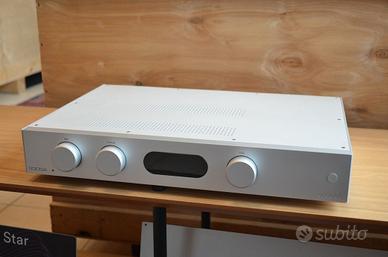 Sono un rivenditore... Hi-Fi 2 ERRE Completamente ridisegnato da zero, il nostro nuovo amplificatore integrato, l’8300A è molto più avanti rispetto a quello che era già un leader del settore. Maggiore potenza, un ulteriore stadio phono e un nuovo stile audiolab rendono l’amplificatore più elegante e versatile che mai. Soprattutto, i nuovi circuiti ultra efficienti e i componenti ottimizzati creano un’esperienza di ascolto che porta una nuova definizione alla tua musica preferita. Amplificatore integrato stereo in configurazione dual mono, potenza 75W x 2 su 8 ohm,115W x 2 su 4 ohm, 2 uscite pre out, 1 ingresso main in, 5 ingressi di linea RCA,1 ingresso Phono MM/MC, 1 ingresso bilanciato XLR, distorsione armonica minore di 0,002%, risposta in frequenza 1Hz-100kHz (± 3dB), telecomando, dimensioni 444 x 80 x 330mm, peso 7.8k Come nuovo, con imballo, manuale, telecomando e garanzia.