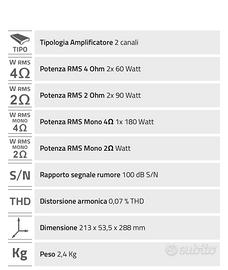 Amplificatore audison sr2 lo vendo per cambio macchina 100